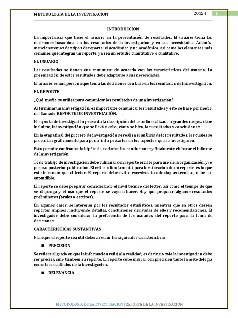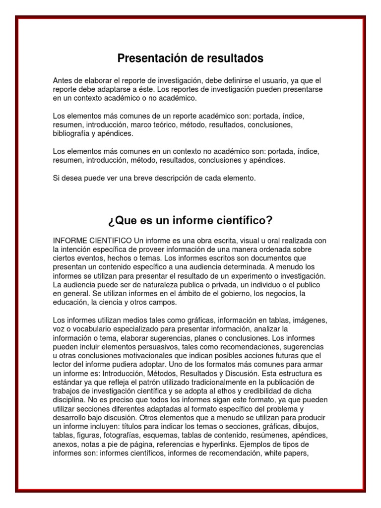 Estas son algunas de las lo que verdaderamente sucede es lo siguiente. Resultados básicos de una investigación, resultados de un proyecto técnico, la. Un reporte no es una. Es la parte esencial de un trabajo, de ella depende principalmente la lectura de un reporte o informe. Cmo hace el autor para convencernos de su hiptesis?